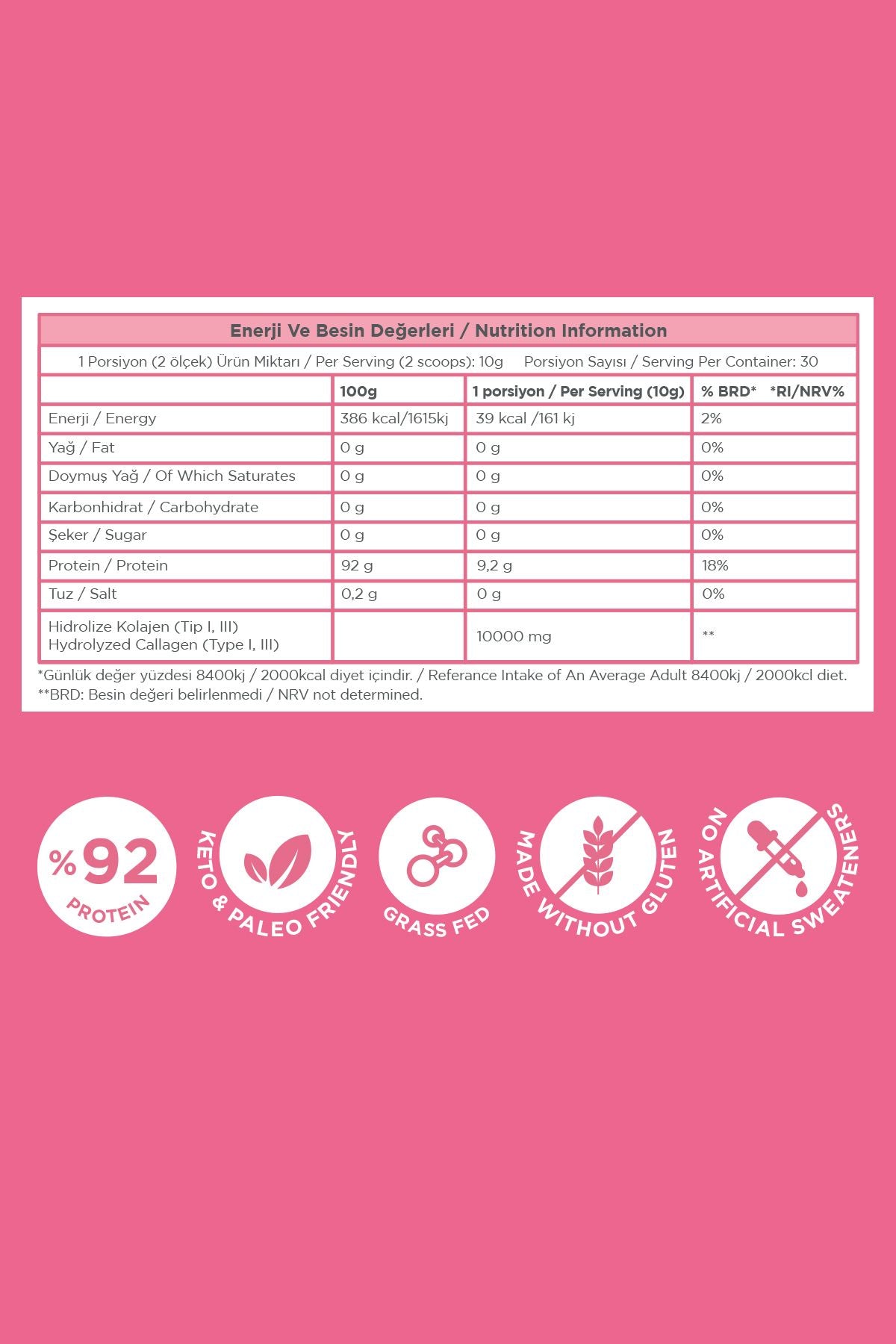 Kahve, smoothie ve çay dahil sıcak veya soğuk sıvılarda çözünür, faydalarından yararlanmak için ihtiyacınız olan tek şey günde yaklaşık 2 ölçek! Sabah, öğleden sonra veya akşam alınabilir.